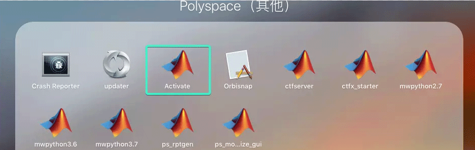 第九步、启动软件,这个时候我们发现软件没有启动程序!!和Windows版本差不多,启动程序没有自动创建,我们进入文件夹自己创建一个替身就行了;所在目录/applications/Polyspace/r2019b/bin/maci64/(如动图所示)
